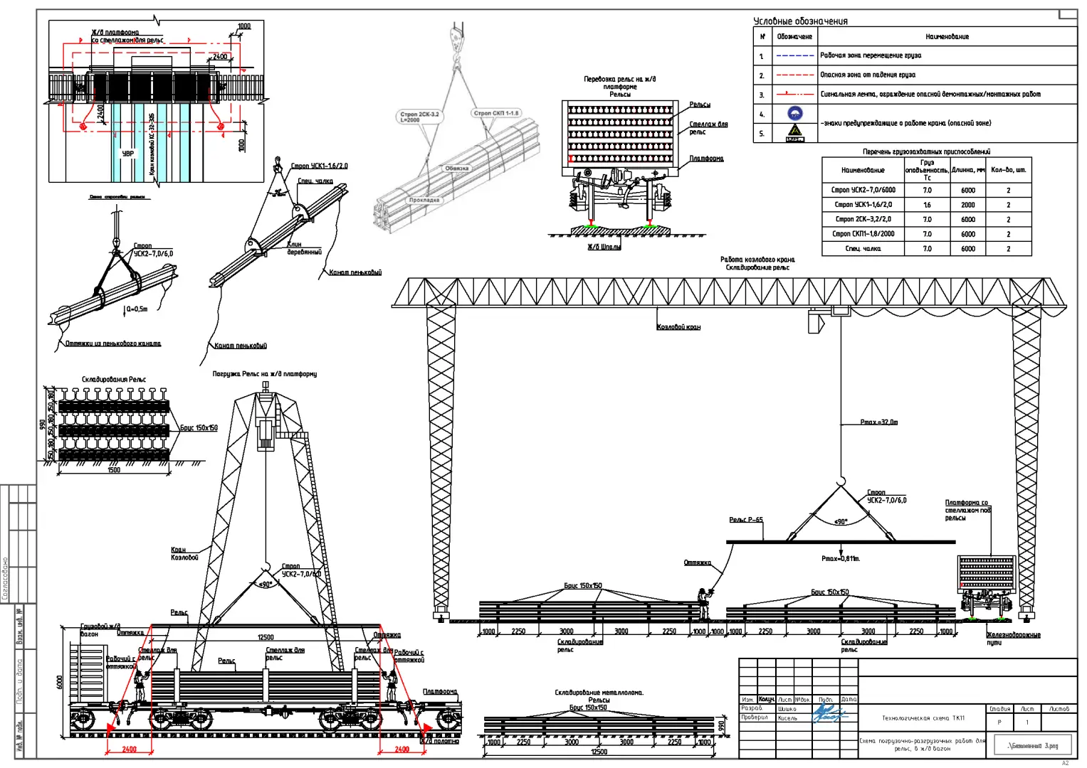 Документацию дополняют чертежи и схемы, которые представляют устройство монтажных конструкций, такелажных средств.