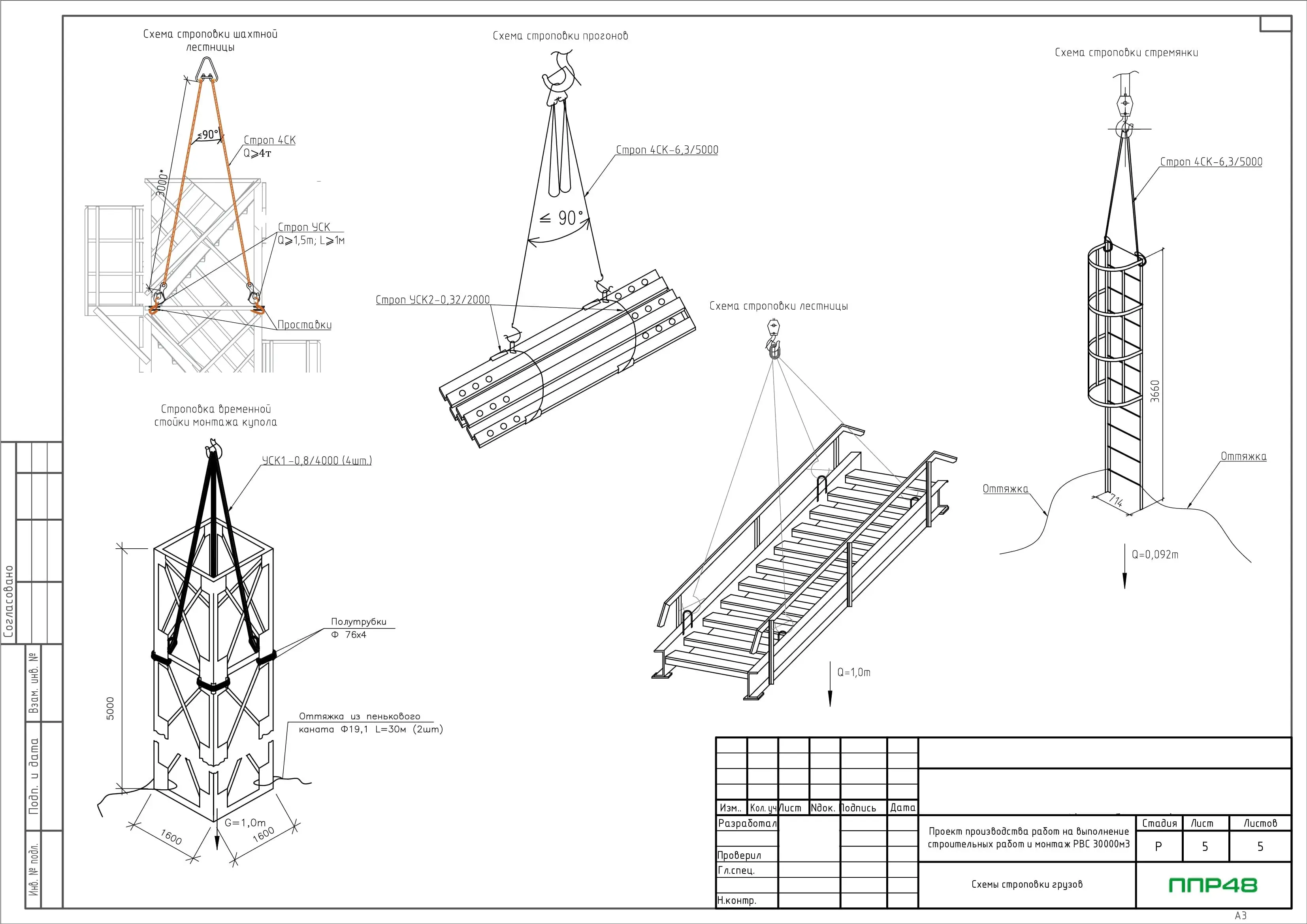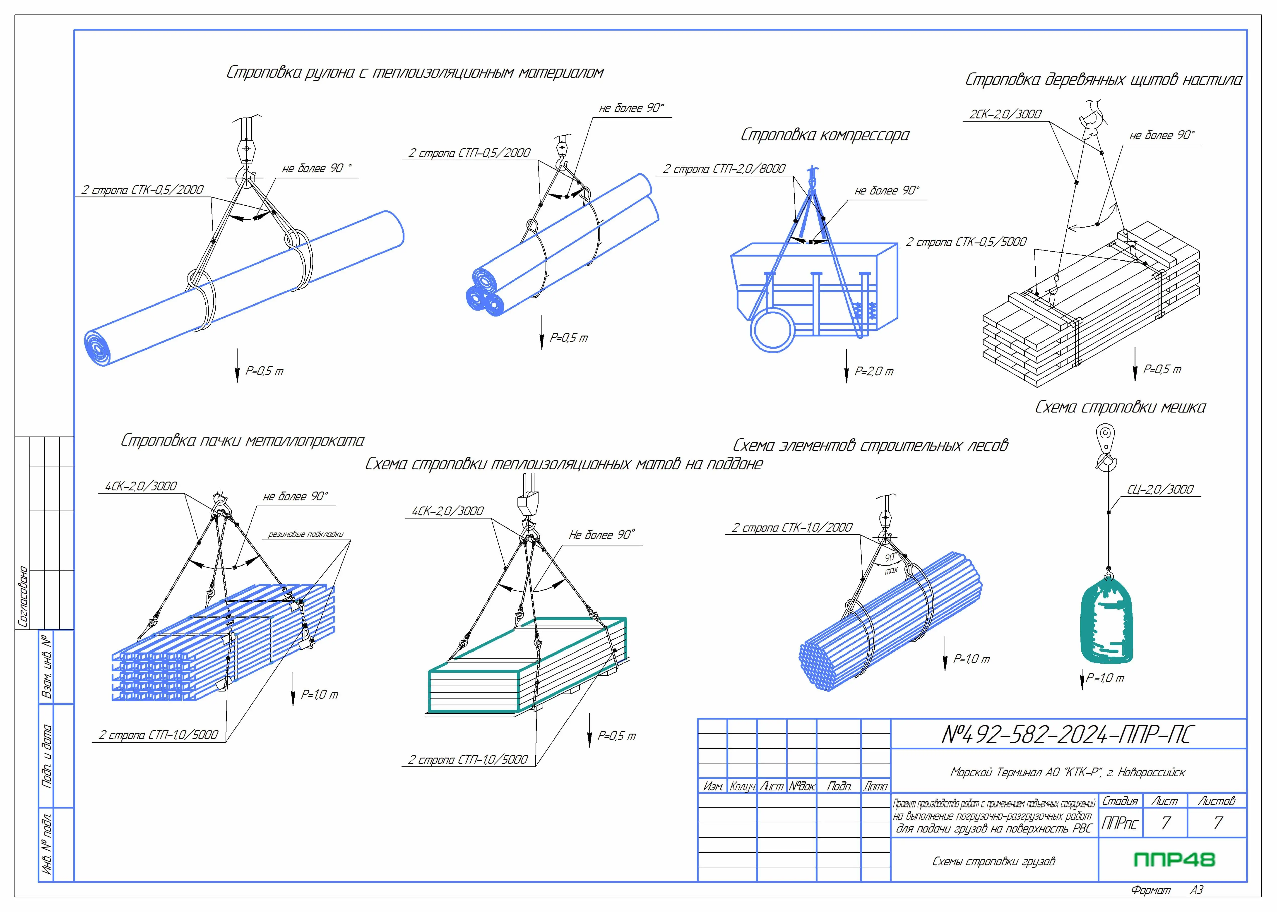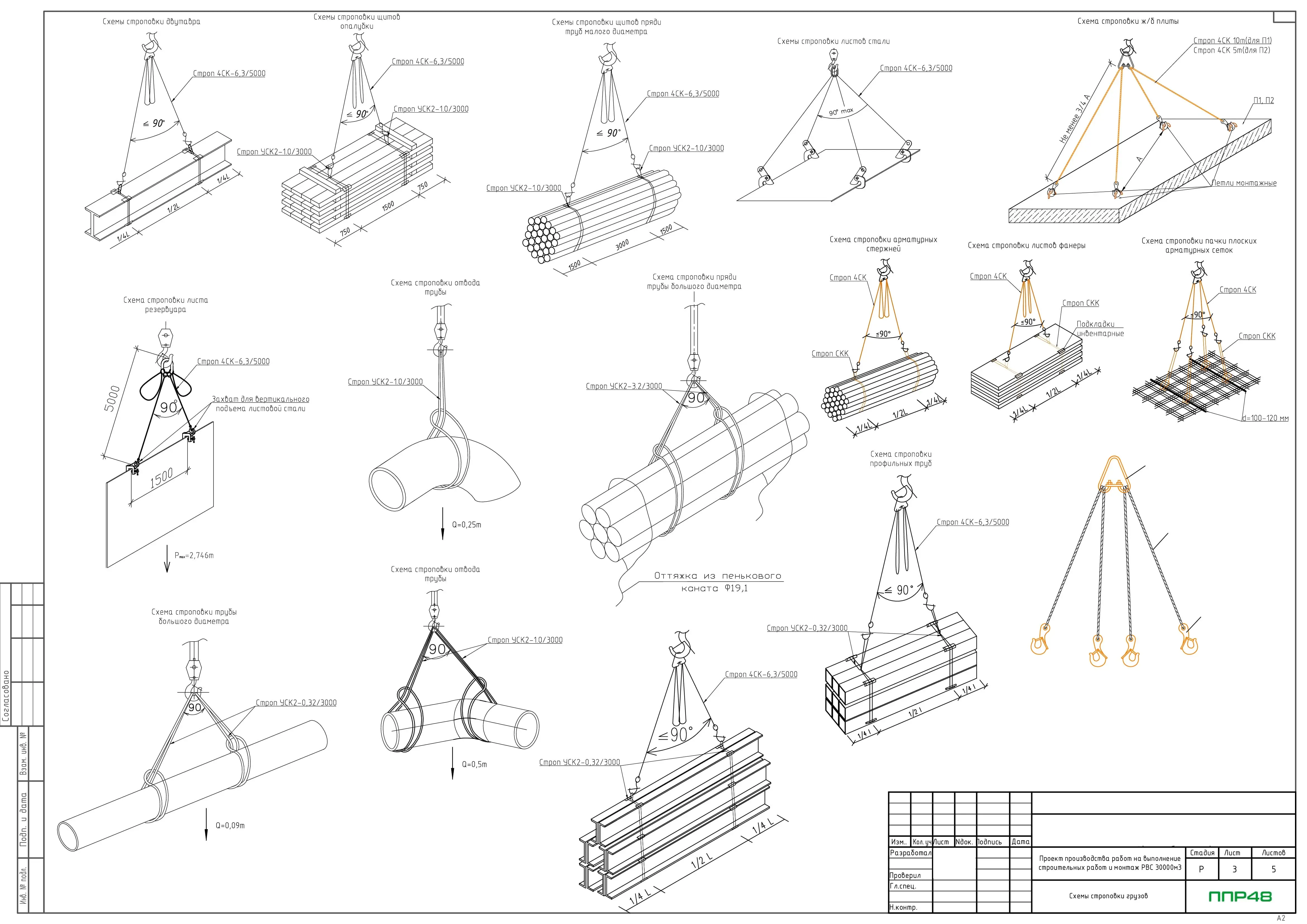 Особое внимание компания уделяет графическим материалам. В ППР разрабатываются и включаются подробные схемы:- строповки грузов — показывают способ закрепления такелажных приспособлений для каждого элемента;