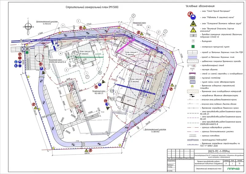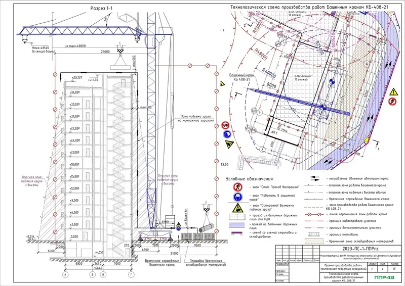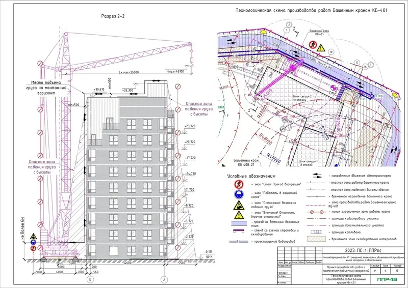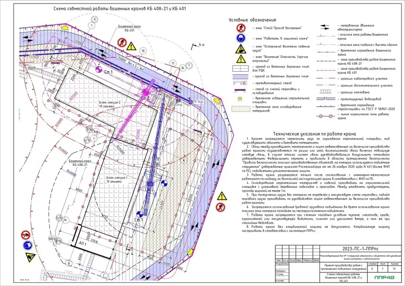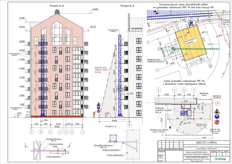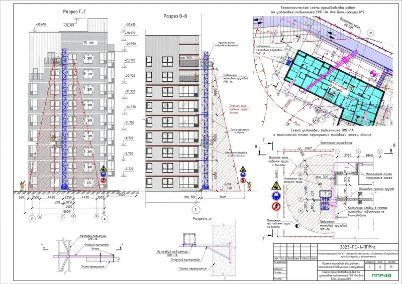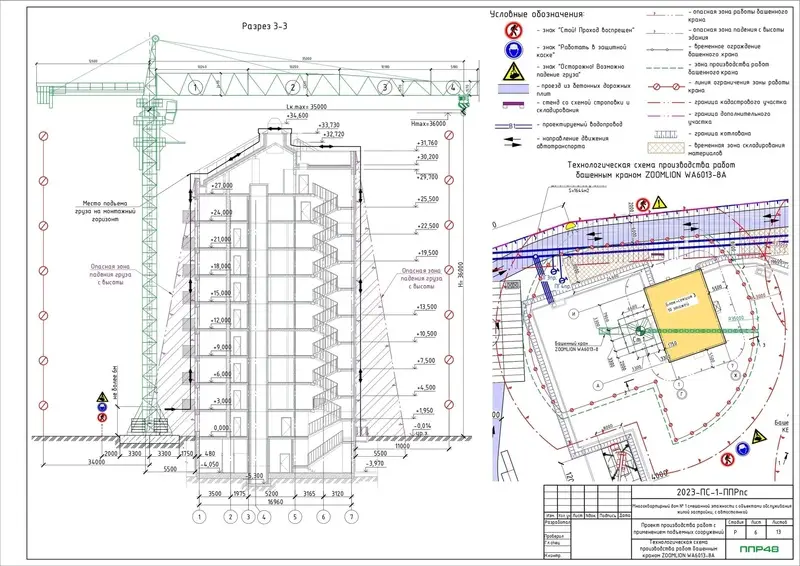 При разработке проекта производства работ необходимо отразить все требования по безопасности. Перед началом работ подбирают технику с учётом высотных характеристик, грузоподъёмности. Эти данные также отображают в графической части проекта. Информацию о технологических картах (ТК) можно изучить тут.