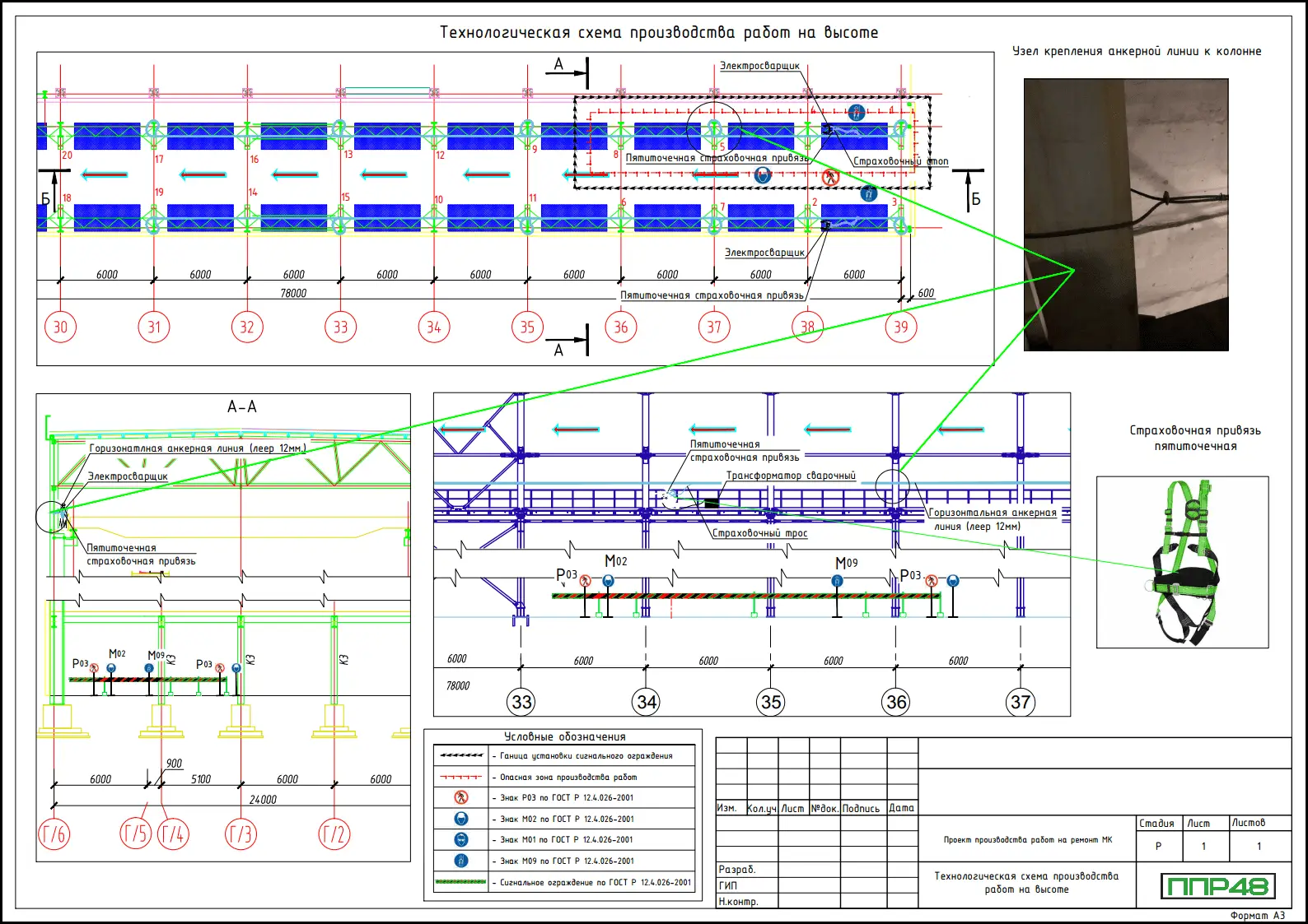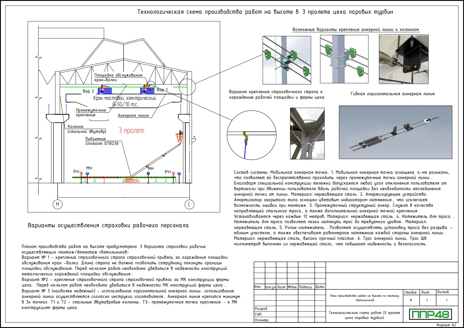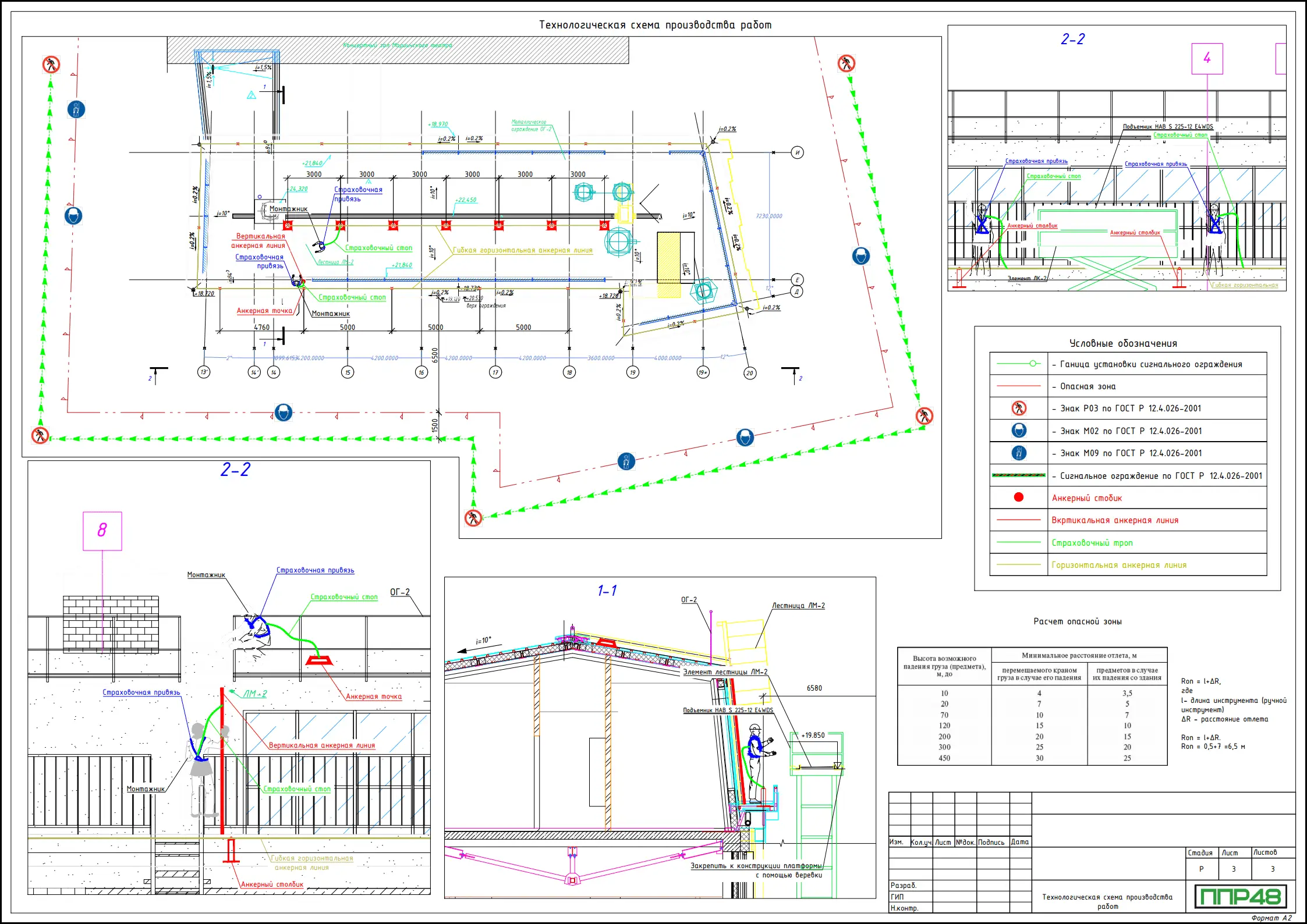 - Технологические схемы производства работ на высоте (планы, разрезы)