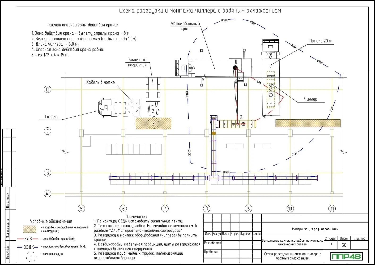 Для работ по монтажу инженерного оборудования на производственных объектах (внутри зданий и сооружений) рекомендуется в состав ППР включать раздел предусматривающий установку вспомогательных систем и оборудования - конструкции строительных лесов, тельферов и т.д.
