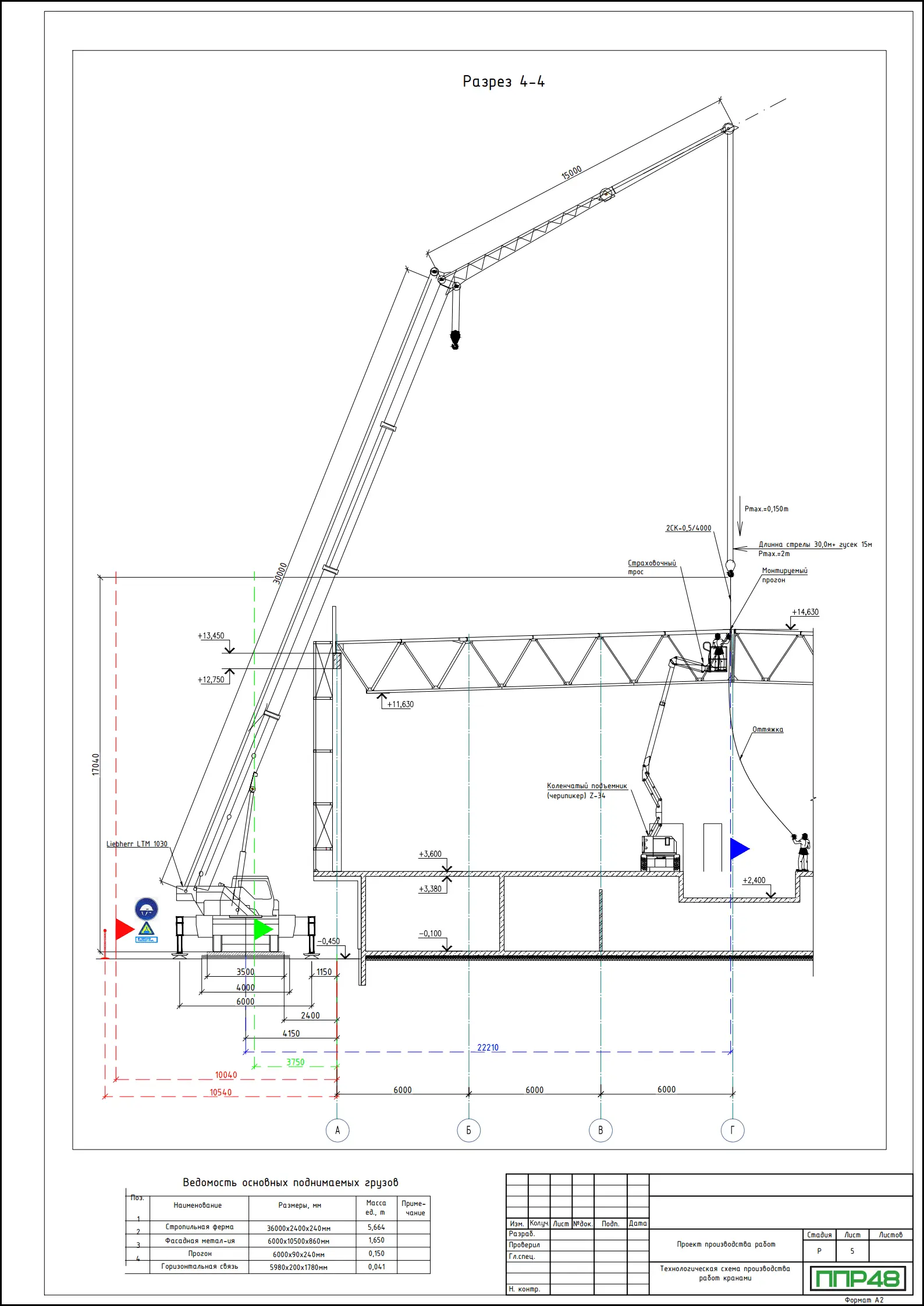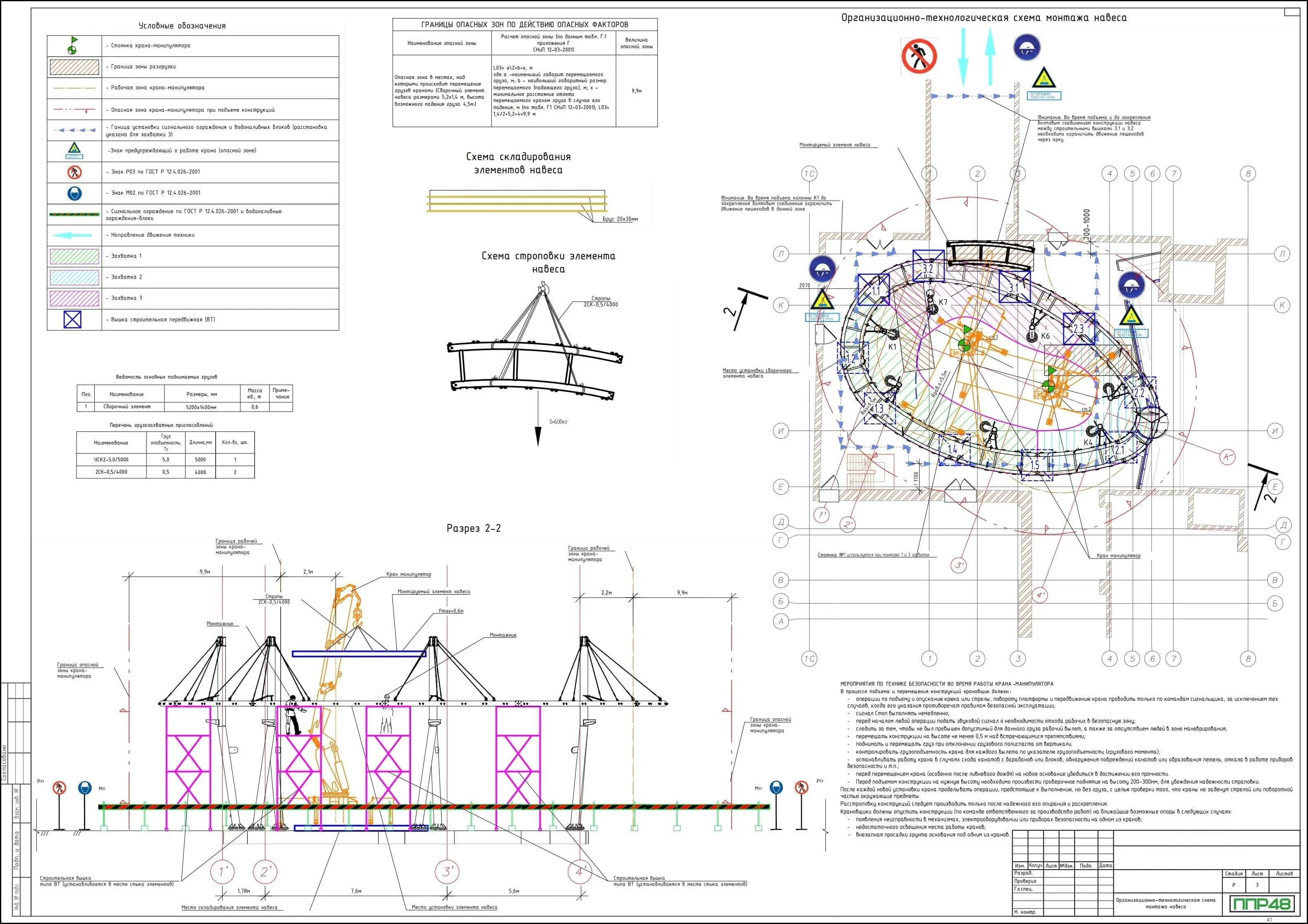 - этапы работ и взаимодействия грузоподъёмных механизмов, которые планируется задействовать в монтажных операциях;