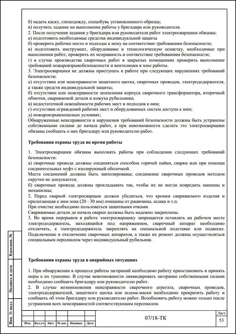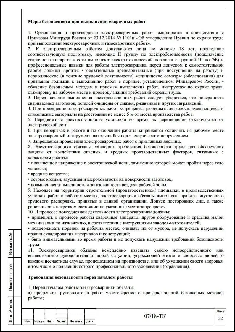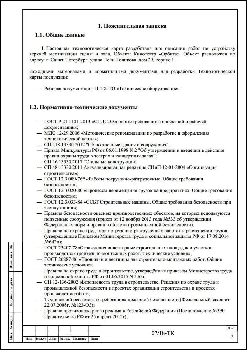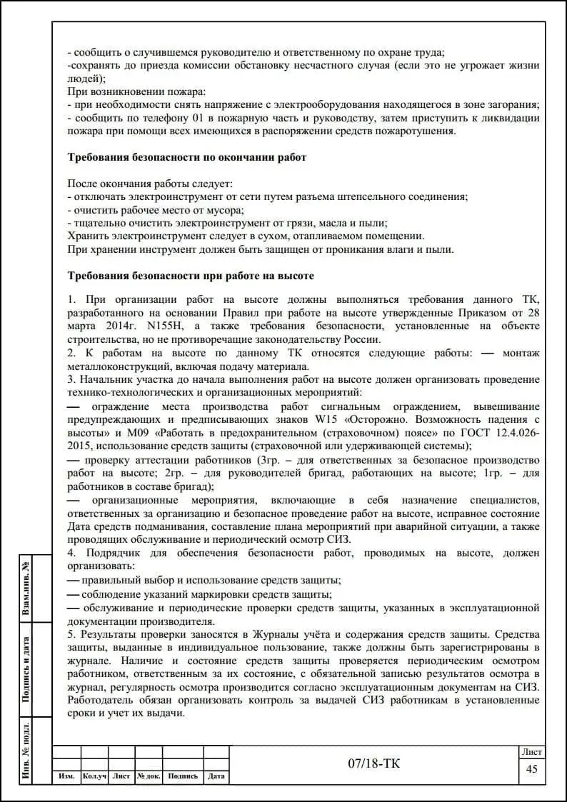 Порядок разработки технологических карт безопасного производства работ