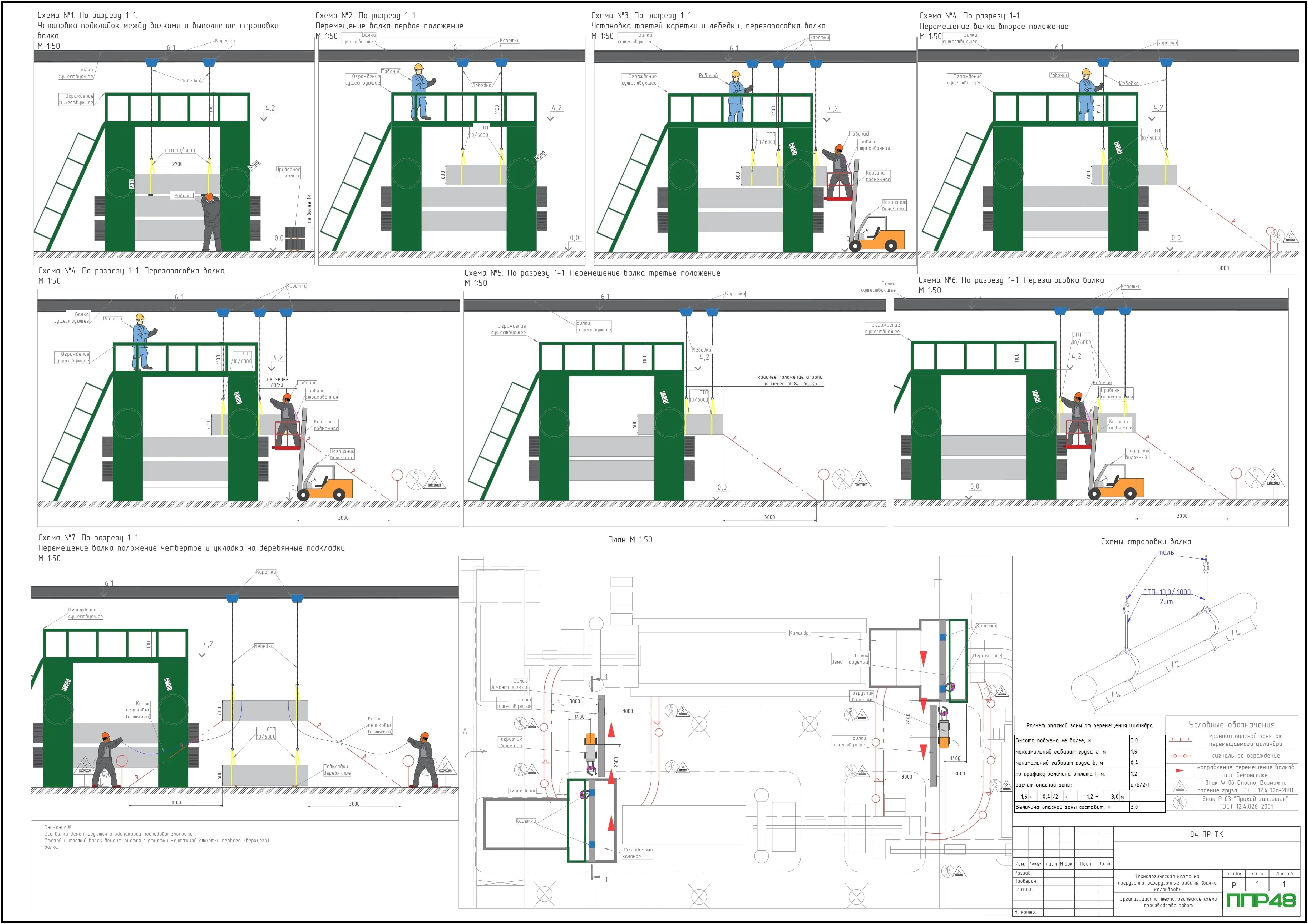 Область применения ТК - операции по перемещению грузов, монтажу/демонтажу конструкций, с использованием грузоподъемной техники, подача материалов в зону производства СМР. Узнать стоимость разработки ТК.